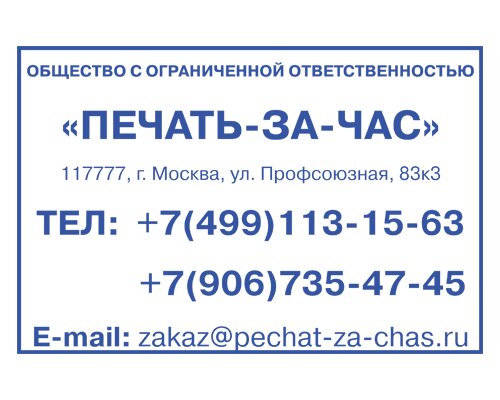 Печать за час Наша фирма «Печать за час» предлагает вам свои услуги по изготовлению надежных печатей из резины . При этом, цена как за полимерную .