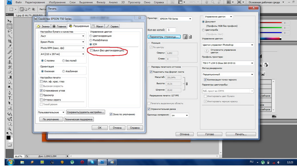 Печать файла фотошоп