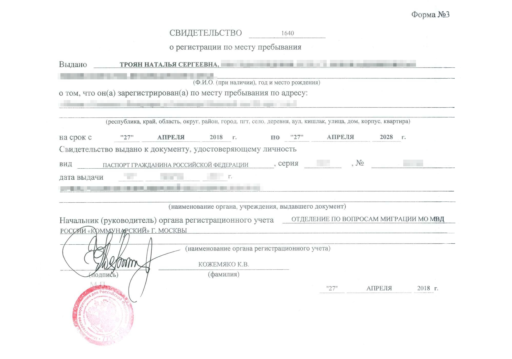 Печать на временной регистрации