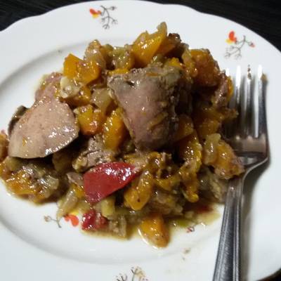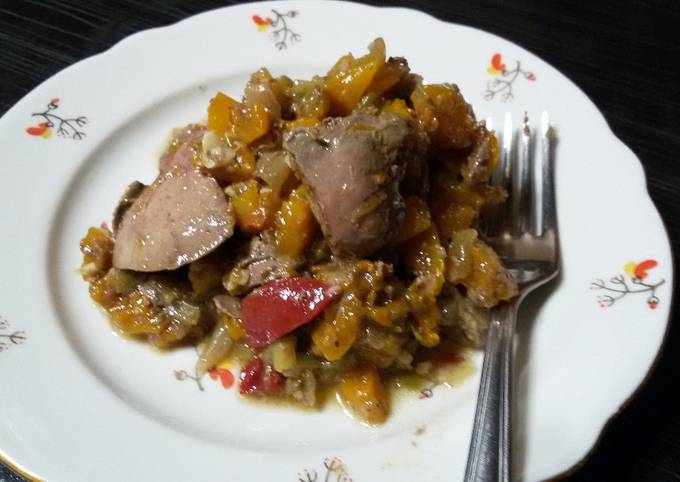 Печень тушеная с тыквой — рецепт с фото пошагово
