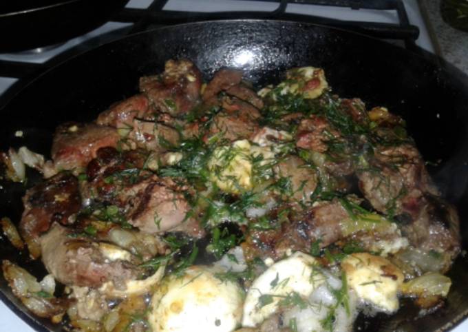 Жареная печень с яйцом - кулинарный рецепт