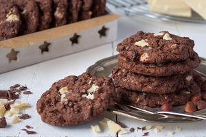 На Новый 2022 год стоит обязательно испечь вот такое вкусное шоколадное печенье, как на фото . Если в изделиях сделать дырочки, то по простому рецепту можно получить еще и съедобное украшение . . .