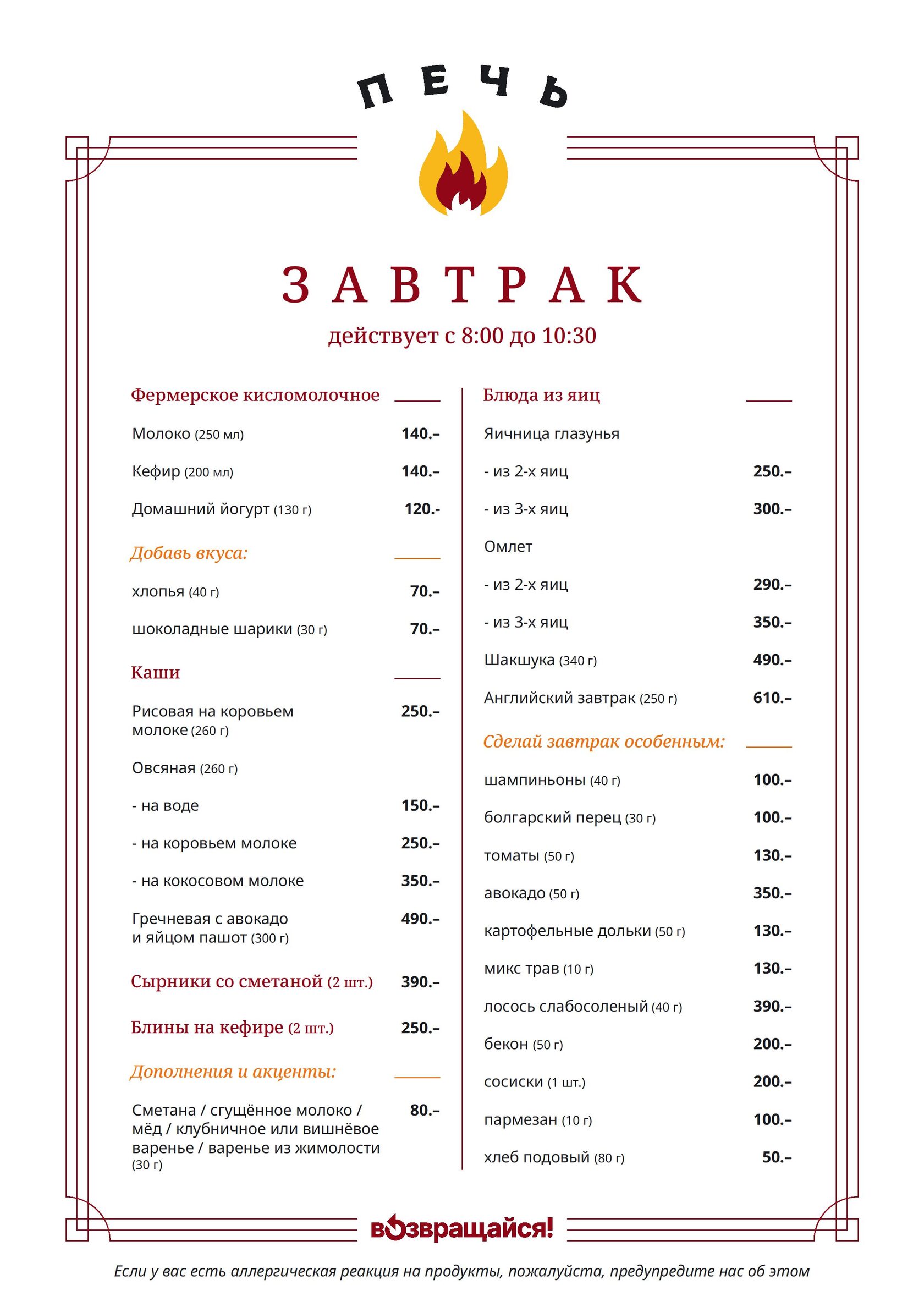 Печка кафе дзержинск меню
