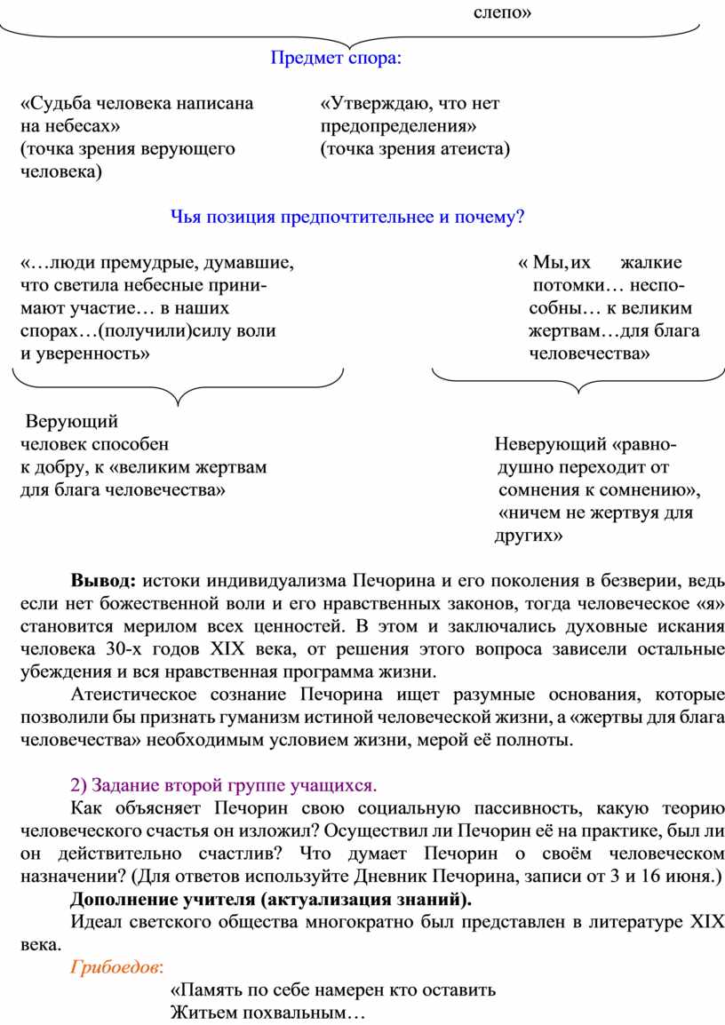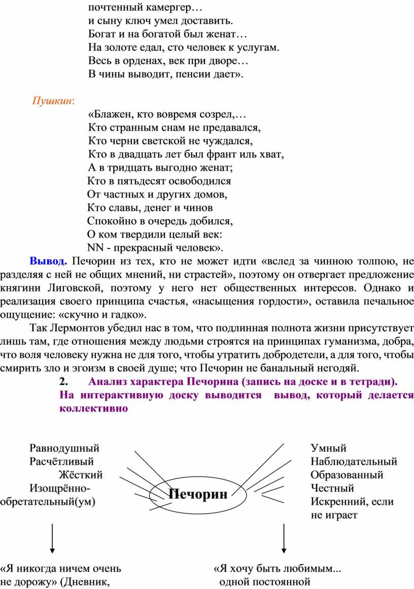 Печорин о светском обществе цитаты