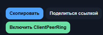Кнопки "Скопировать" (код), "Поделиться ссылкой" и "Включить/Отключить ClientPeerRing"