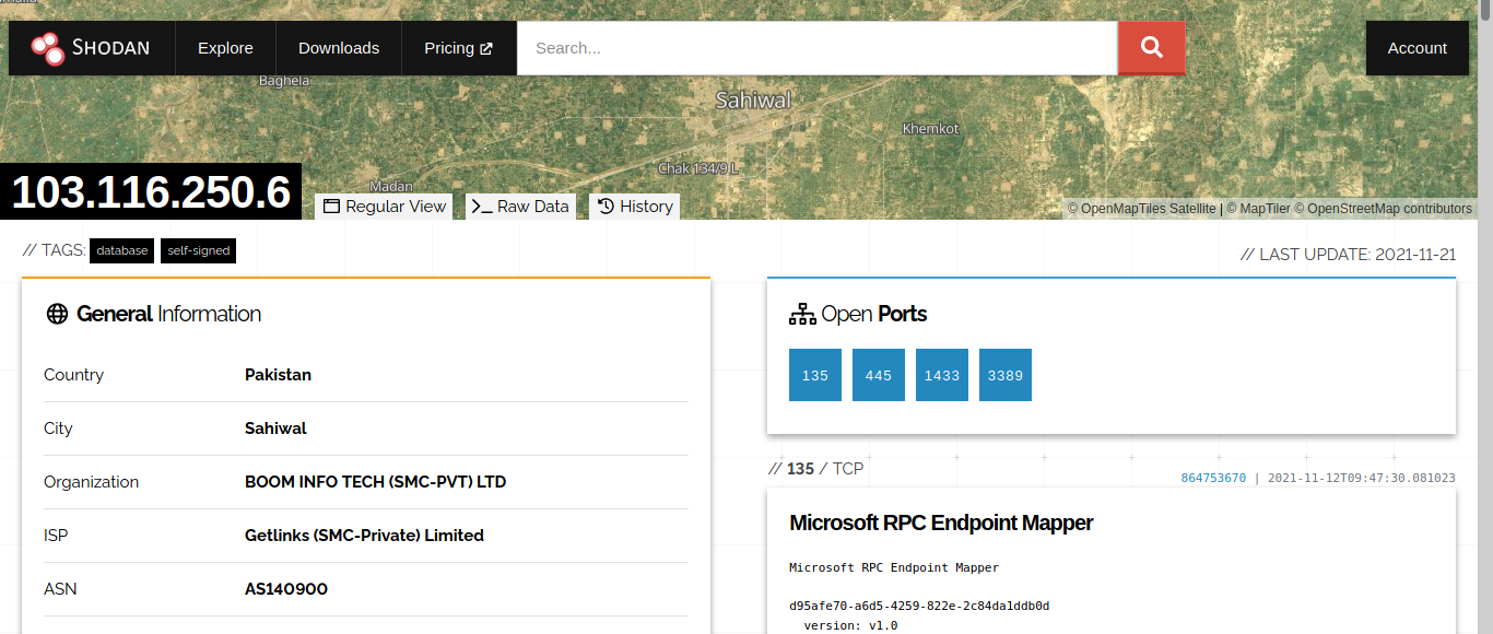 Кстати, на шодане сразу указаны открытые порты и среди них есть 445 (уязвимость eternalblue или ms17_010):