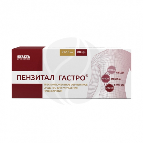 Препарат Пензитал выпускают в таблетках, покрытых кишечнорастворимой оболочкой, по 212,5 мг панкреатина, №20, №30 и №100 . Механизм действия: Ферментный препарат . Компенсирует недостаточность внешнесекреторной функции поджелудочной железы .
