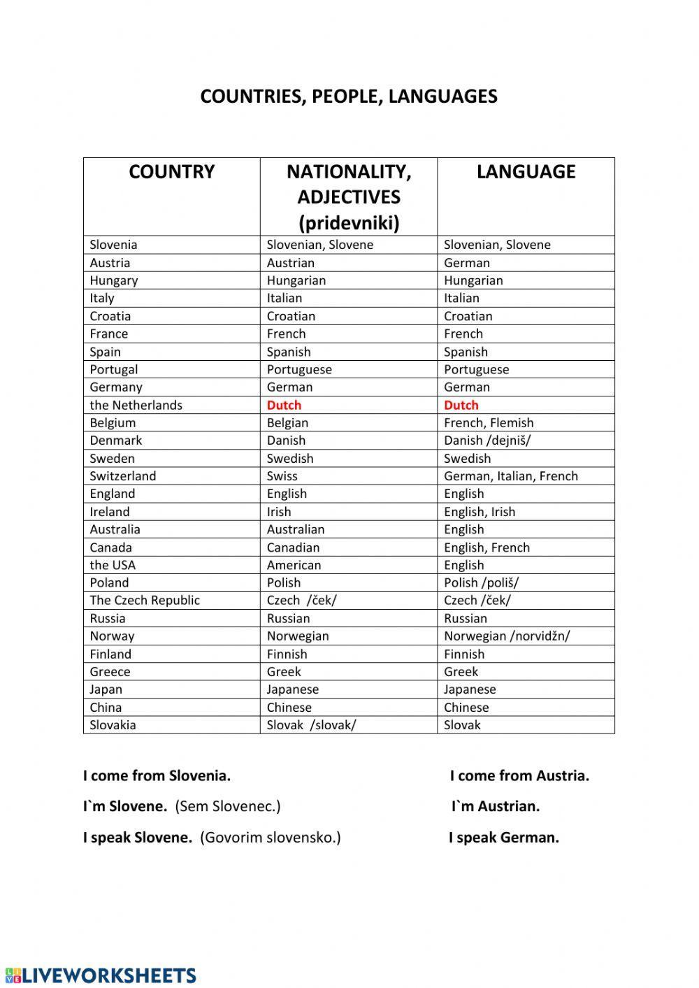 People nationalities languages
