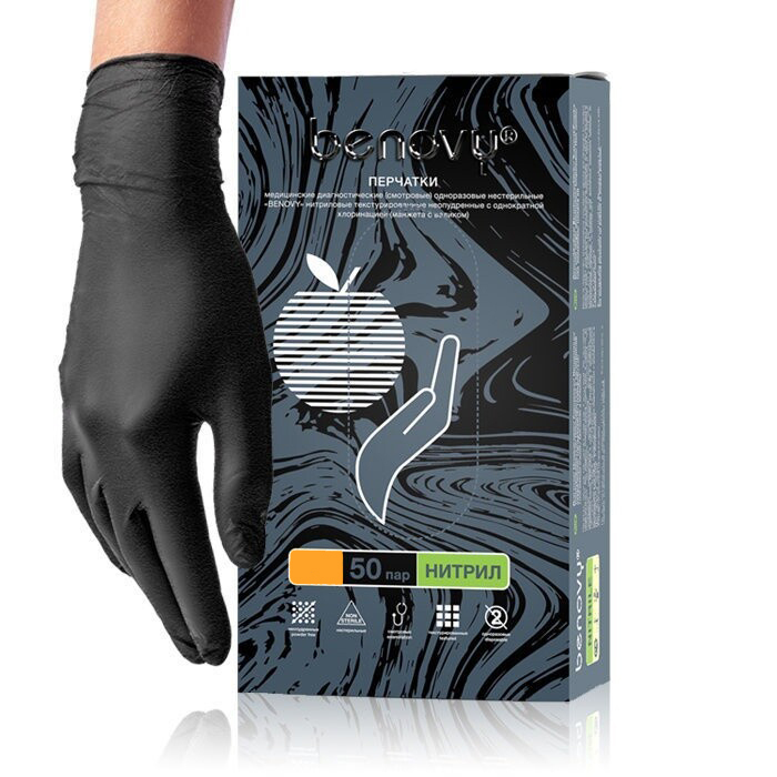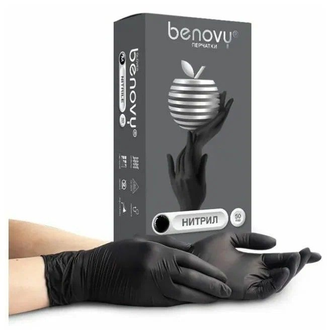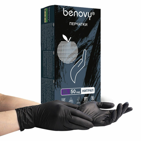 Перчатки нитриловые черные benovy 110 фотографий