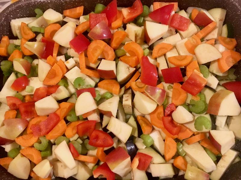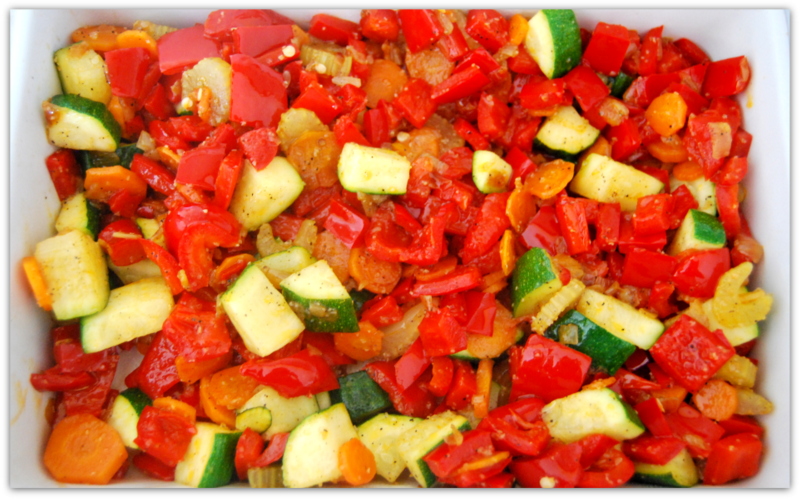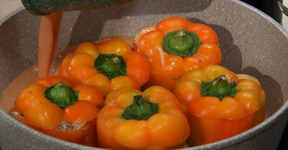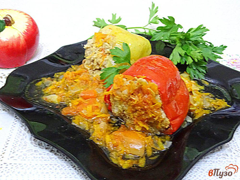Перцы на овощной подушке