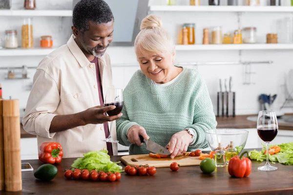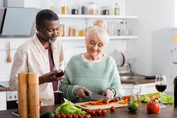 Красивая блондинка-веган развлекается перцем чили, готовя . . .