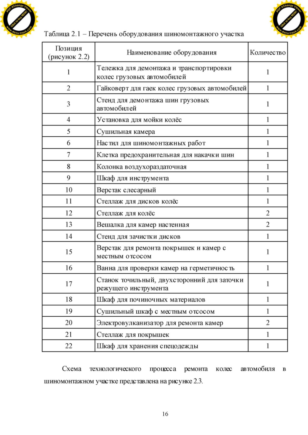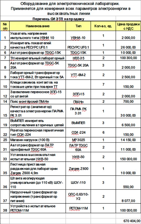Перечень оборудования для то