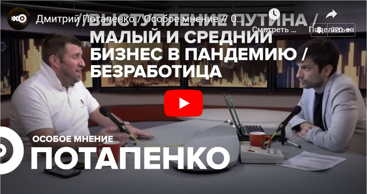 Д. Потапенко― Это про другое. Еще раз, почему крайне важная подмена понятий на уровне почти геббельсовской истории. Эпидемиологи, врачи говорят о том, как распространяется. Они не говорят, для них идеальная ситуация, для любого врача – когда пациенты, грубо говоря, по одному находятся на расстоянии условного километра. И когда единственный, кто замещается, перемещается – врач. Это условно идеально, потому что врачи самое тяжелое звено, потому что они больше всего подвержены заболеваниям. И смертям. Это самое тяжелое для них. Но здесь минимальное количество точек контакта. Но врачам не нужно рассматривать экономическую составляющую. Потому что для врачей деньги приходят из тумбочки, они не продают услуги. Они спасают вашу бренную жизнь, которая на фиг не нужна этой планете. Но у них нет вариантов, они дали клятву Гиппократа – они спасают. Даже если вы последний Гитлер этой страны или всего мира вообще. Они все равно будут спасать вас. Потому что понятно, клятва Гиппократа, плюс есть некое миролюбие и далее по списку. Дальше выступают те, кого мы ошибочно называем управленцами государства. Чинуши. И в том числе медицинские чинуши. Тут самое опасное – люди вроде как в медицинских халатах, но которые уже давно не практикуют. Но начинают устанавливать и говорить: вот нам нужен такой карантин, сякой карантин. Потому что вирусолог выступал, две минуты он первое, что делал – пытался скинуть меня с пьедестала и хвалил Владимира Владимировича. Потому что лучше Владимира Владимировича, чем я, не хвалит никто.