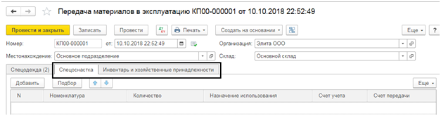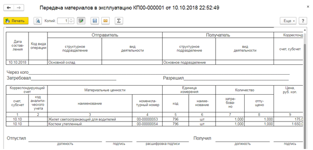 Передача материалов подразделению