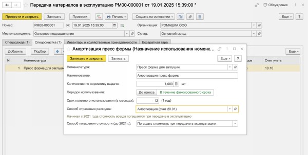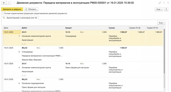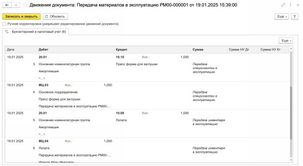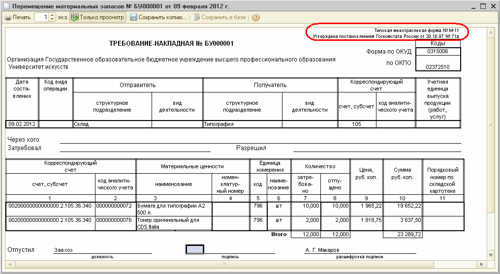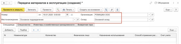 Передача материалов подразделению