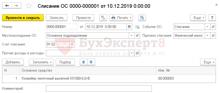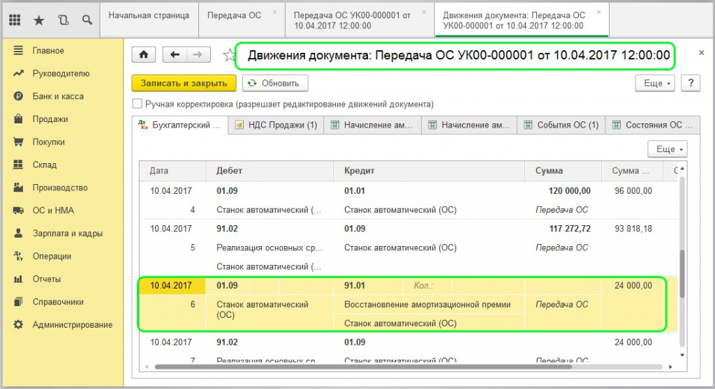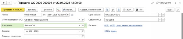 Передача ос проводки в 1с