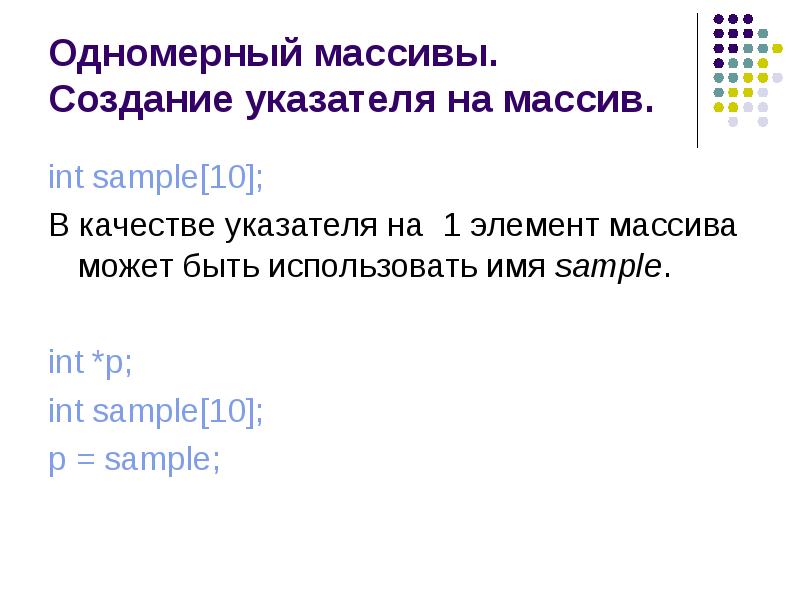 Передать указатель на массив