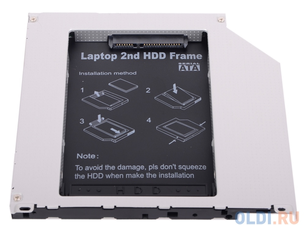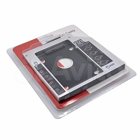 Переходник, позволяющий установить SSD/ HDD формата 2 .5" (толщиной до 9 .5 мм) вместо оптического привода высотой 12 .5 мм . Такие устройства также называют Optibay, HDD Caddy, адаптер hdd вместо dvd