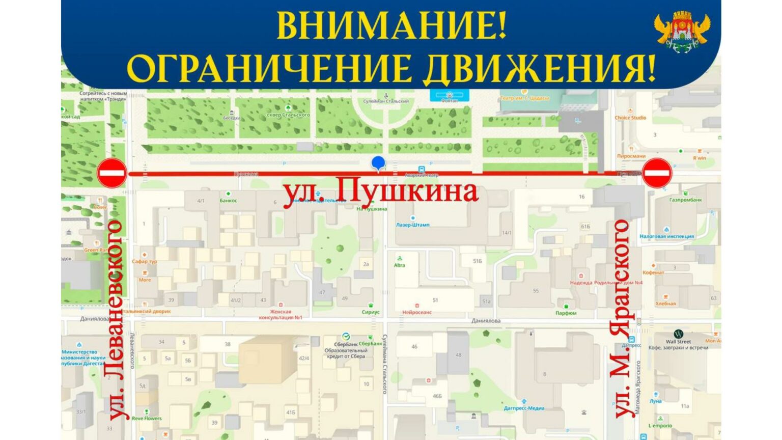 Перекрыта улица пушкина