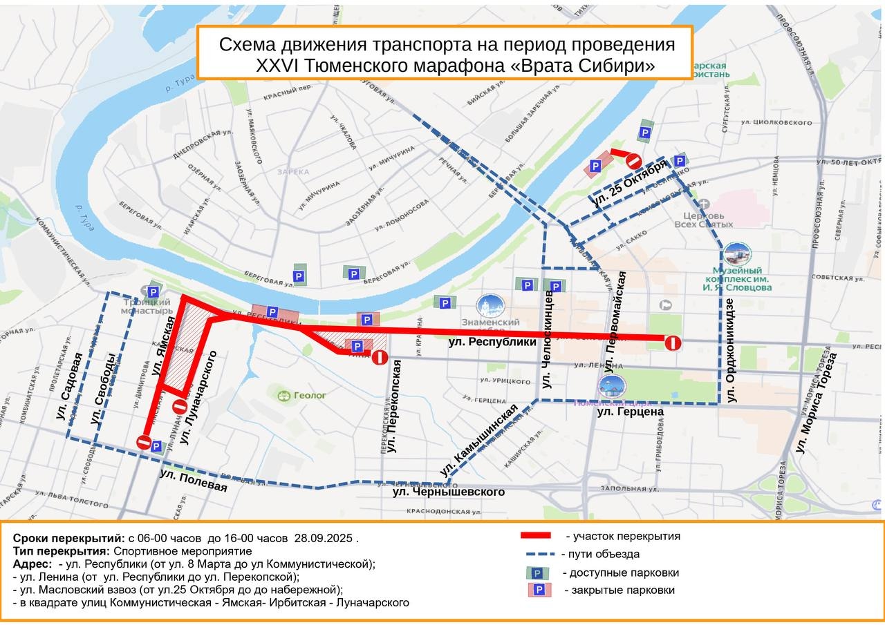 Перекрытие дорог тюмень день города