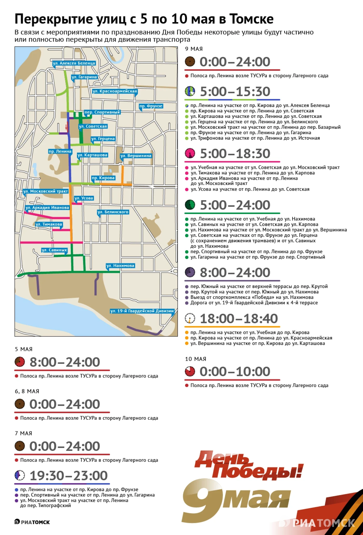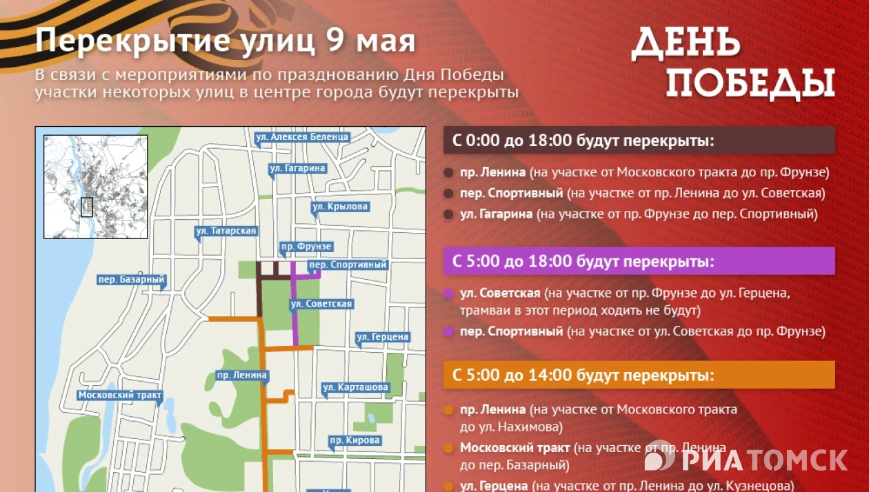Перекрытие улиц томск 9 мая