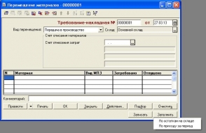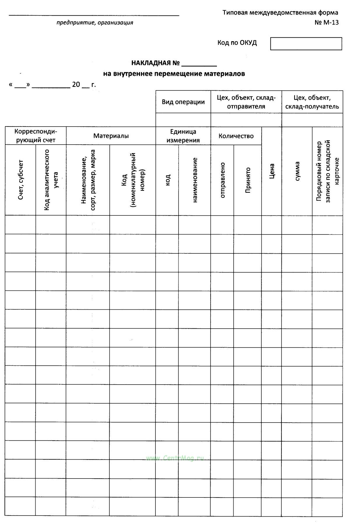 Перемещение материалов бланк