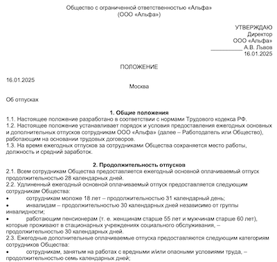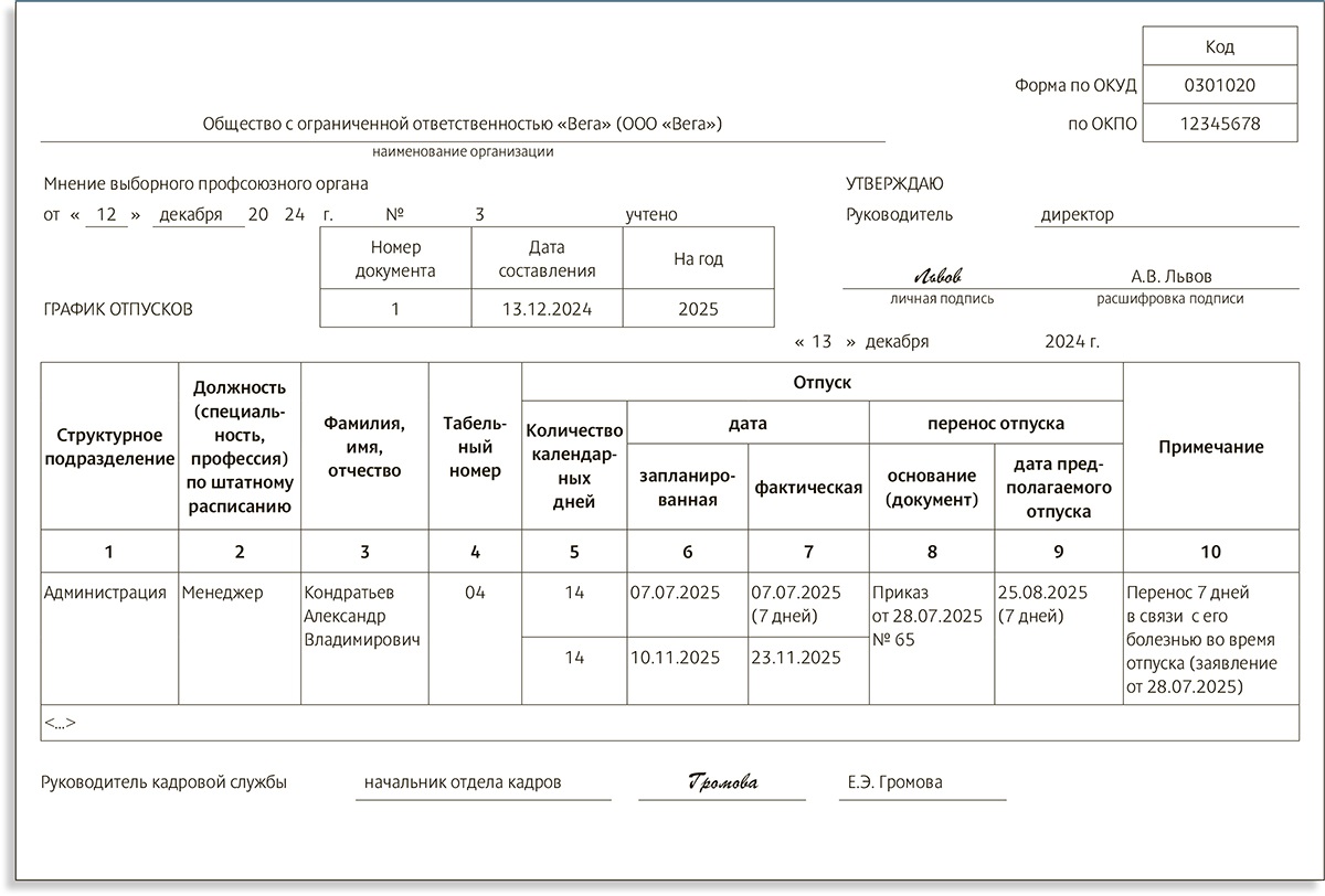 Перенос отпуска инвалиду