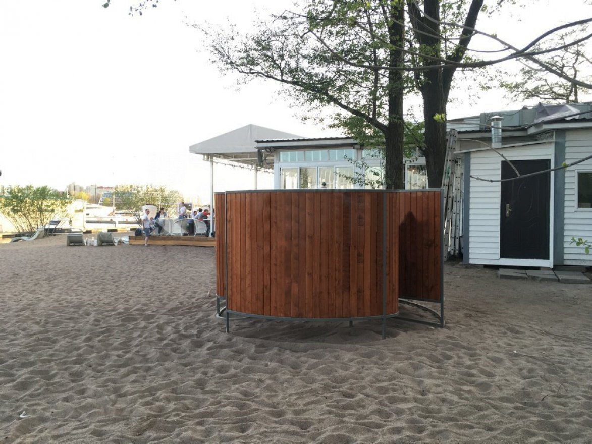 Переодеваются в раздевалке на пляже