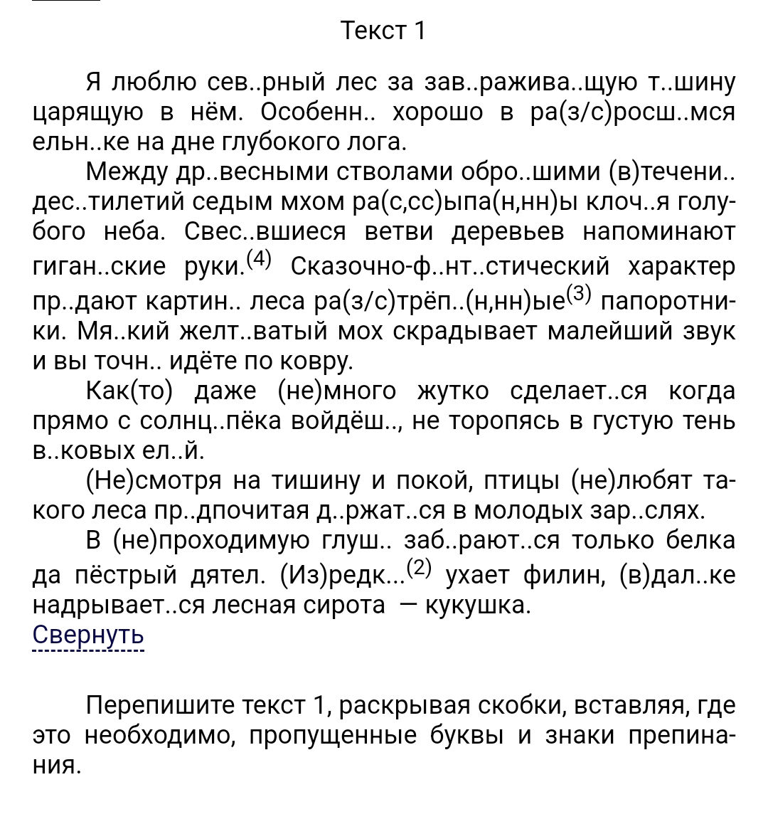 Перепишите текст один
