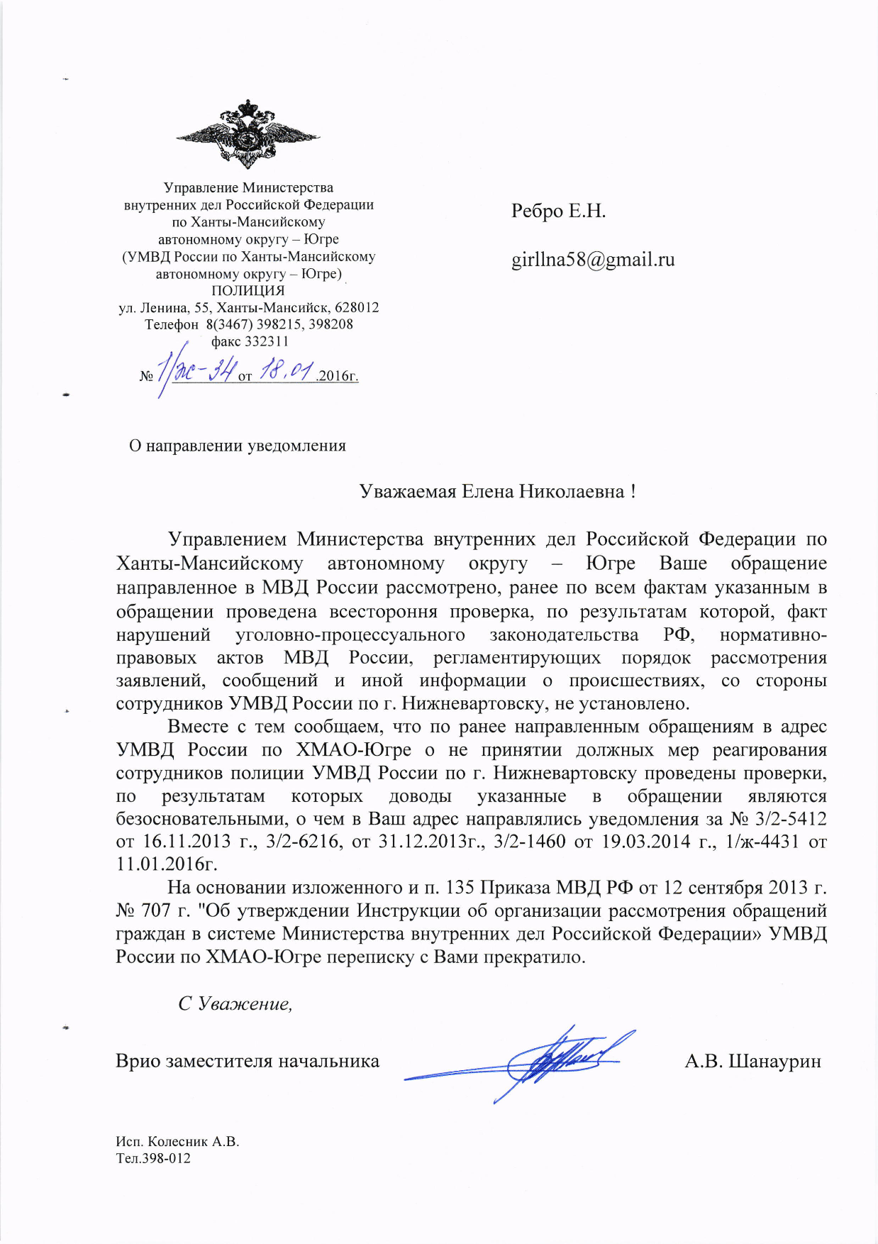 Переписка прекращается