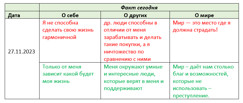 3. Я определяю убеждения, которые стоят за останавливающими меня мыслями. Я отдаю себе отчёт в том, что эти убеждения не являются моими;