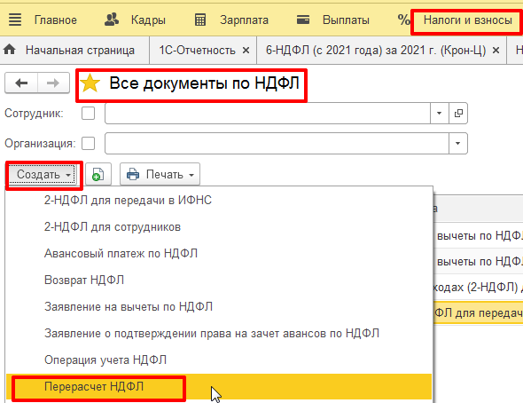 Пересчитать ндфл работникам