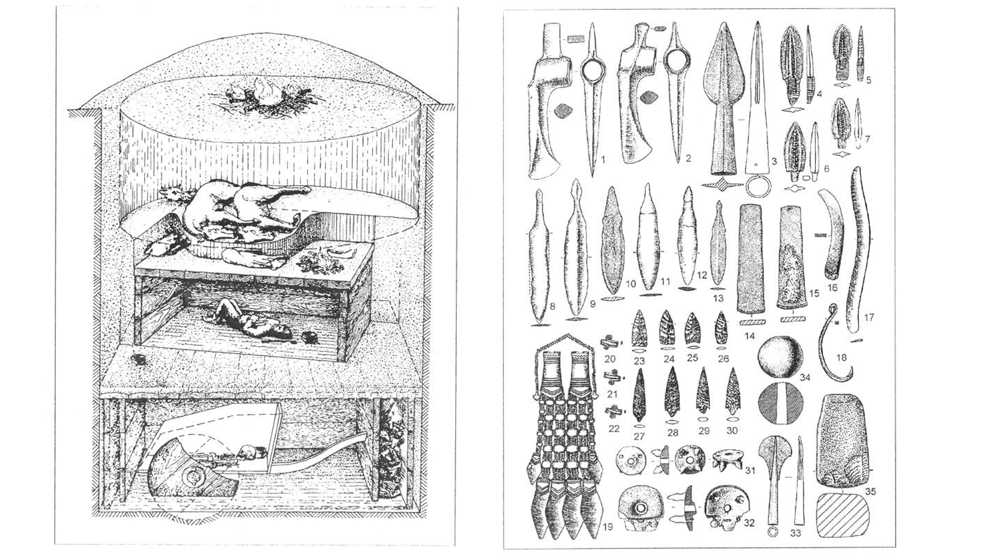Погребения синташтинцев содержат богатый инвентарь, причем особым богатством и воинским убранством – захоронения с оружием и колесницами, отличались погребения тех, кто могут быть идентифицированы нами (по захоронению с ними орудий труда) как мастера – металлурги и плотники-колесничники. Захоронения с символами политической власти выглядят гораздо скромнее. Большую роль в погребальном ритуале играло жертвоприношение коня.