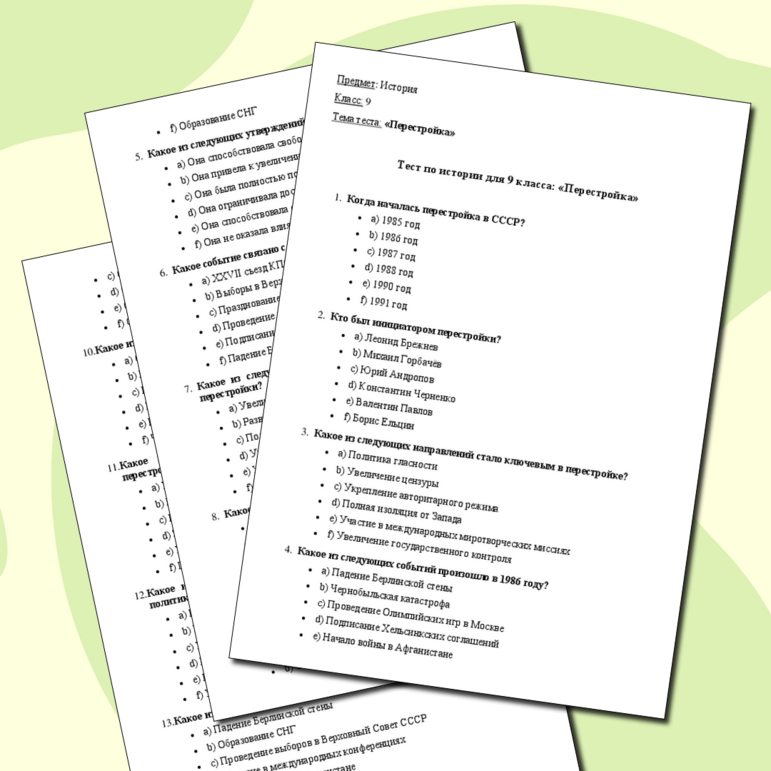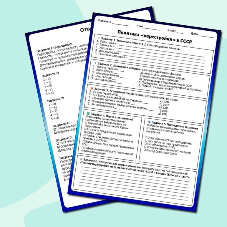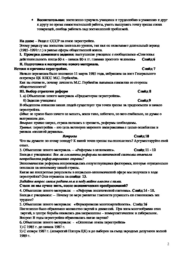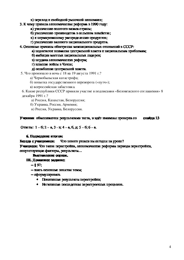 Перестройка самостоятельная работа