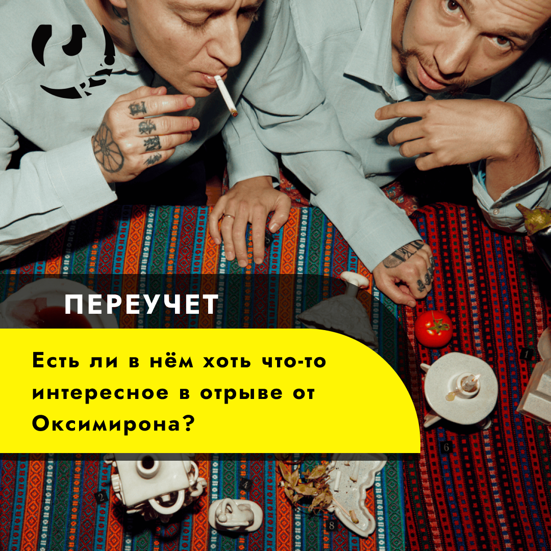 Поскольку всё, что он имеет, он имеет только за счёт того, что было когда-то создано основным эго Оксимирона, его основным лицом. Переучёт не самостоятелен и просто паразитирует на фанбазе совершенно другого проекта, говорящего о совершенно других вещах. И те люди, которые пришли в Переучёт для прослушивания свойственных Оксимирону вещей, не найдут там для себя ничего. Попытки создать некое глубокое творчество не увенчались успехом. Поскольку, например, трек «Суп дня», который якобы говорит об актуальных политических вещах, подразумевает, что «за тебя уже всё выбрали», и имеет энное количество политических отсылок, на самом деле раскрывает уже ранее озвученные самим же Оксимироном вещи. Давайте будем честны, в целом, всё то, что постулирует Переучёт в этом треке, уже даже не свойственны нынешней жизни самого автора, поскольку он находится в иммиграции. То, что он озвучивает, это примитивно, прямолинейно и уже высказано миллионы раз им самим на его прошлых релизах.