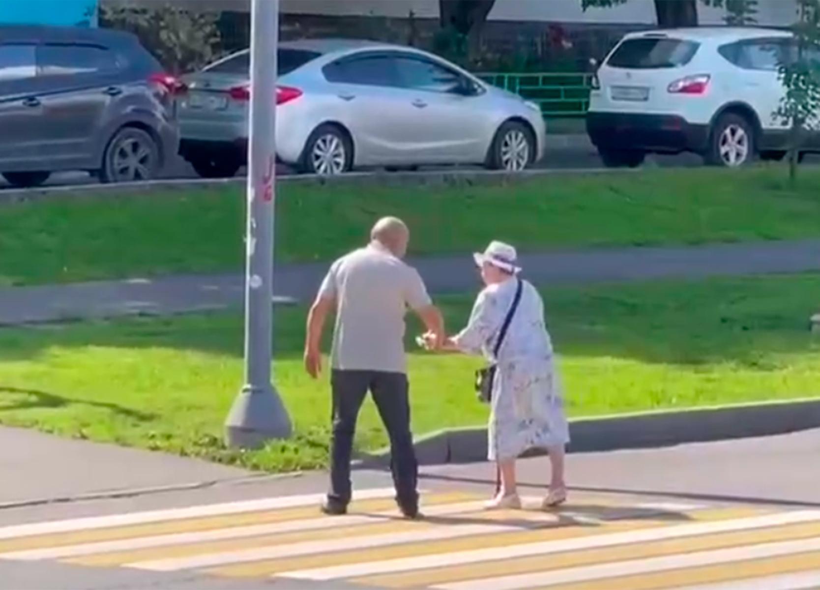 Перевела незнакомую бабушку через дорогу