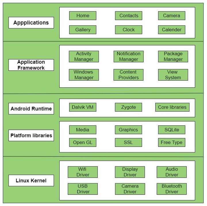 Теперь, прежде чем мы узнаем о тестировании android, очень важно знать, как работает его архитектура. Я дам краткое описание каждого компонента, но если вы хотите узнать больше, вы можете прочитать об этом здесь.