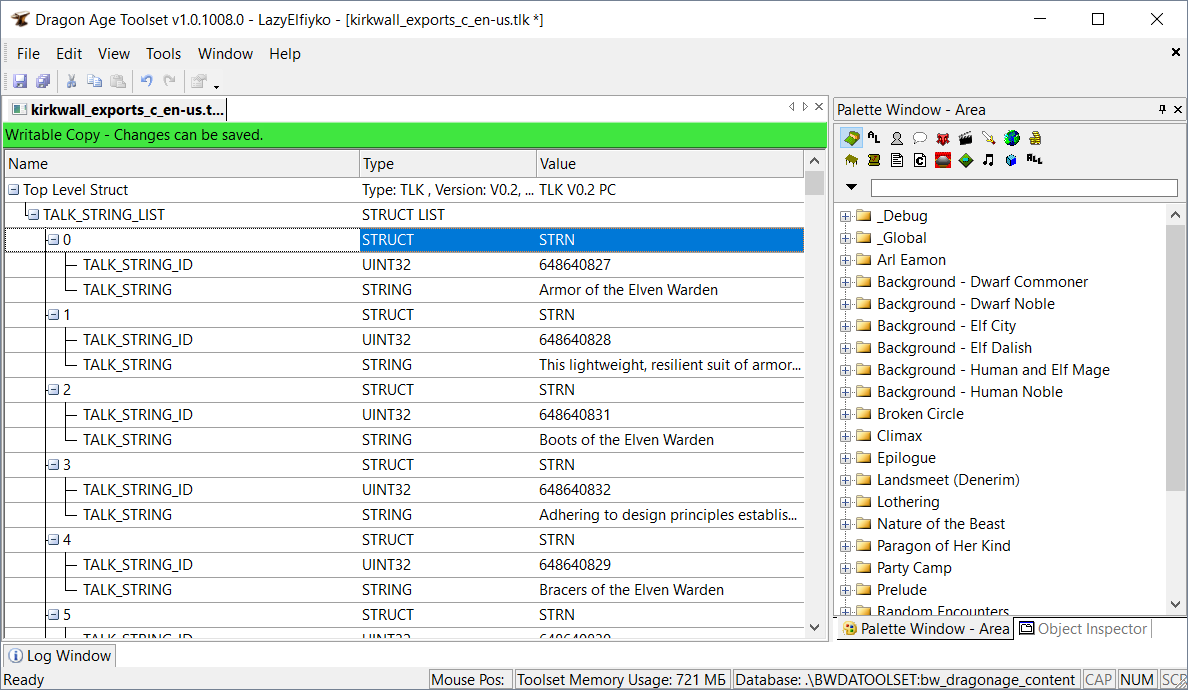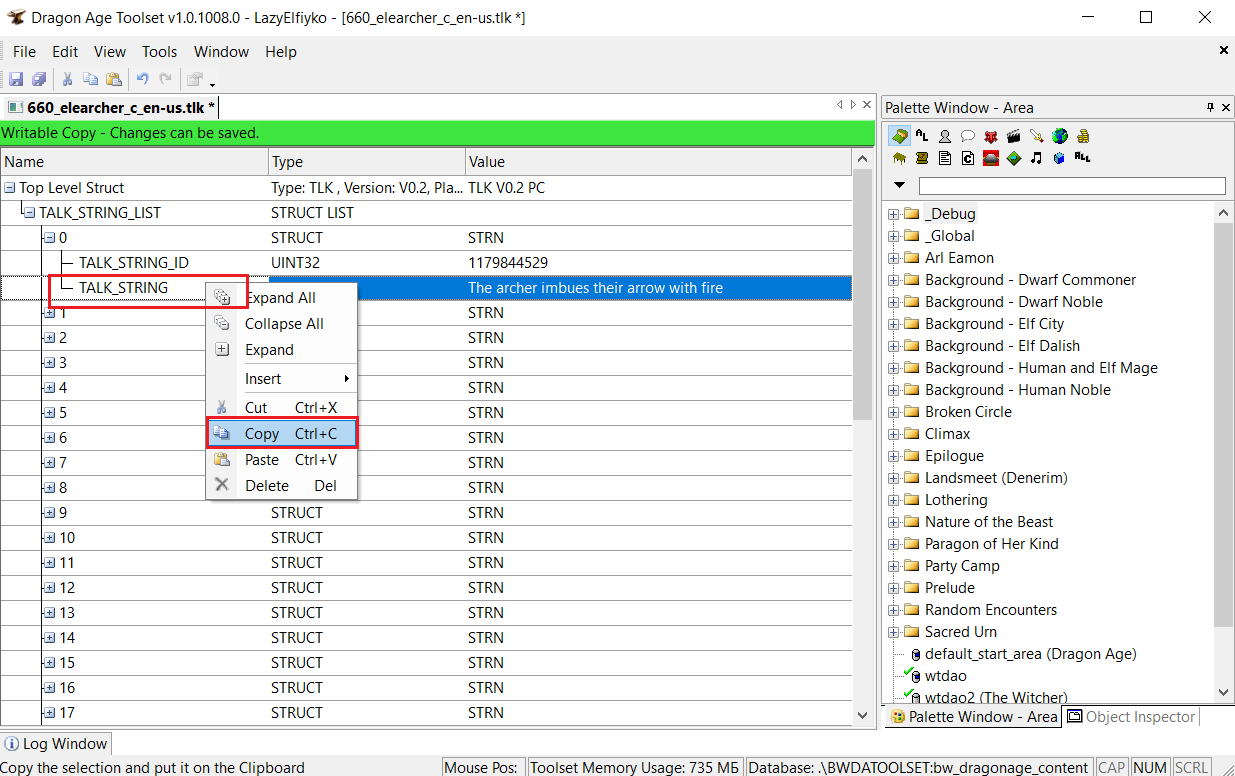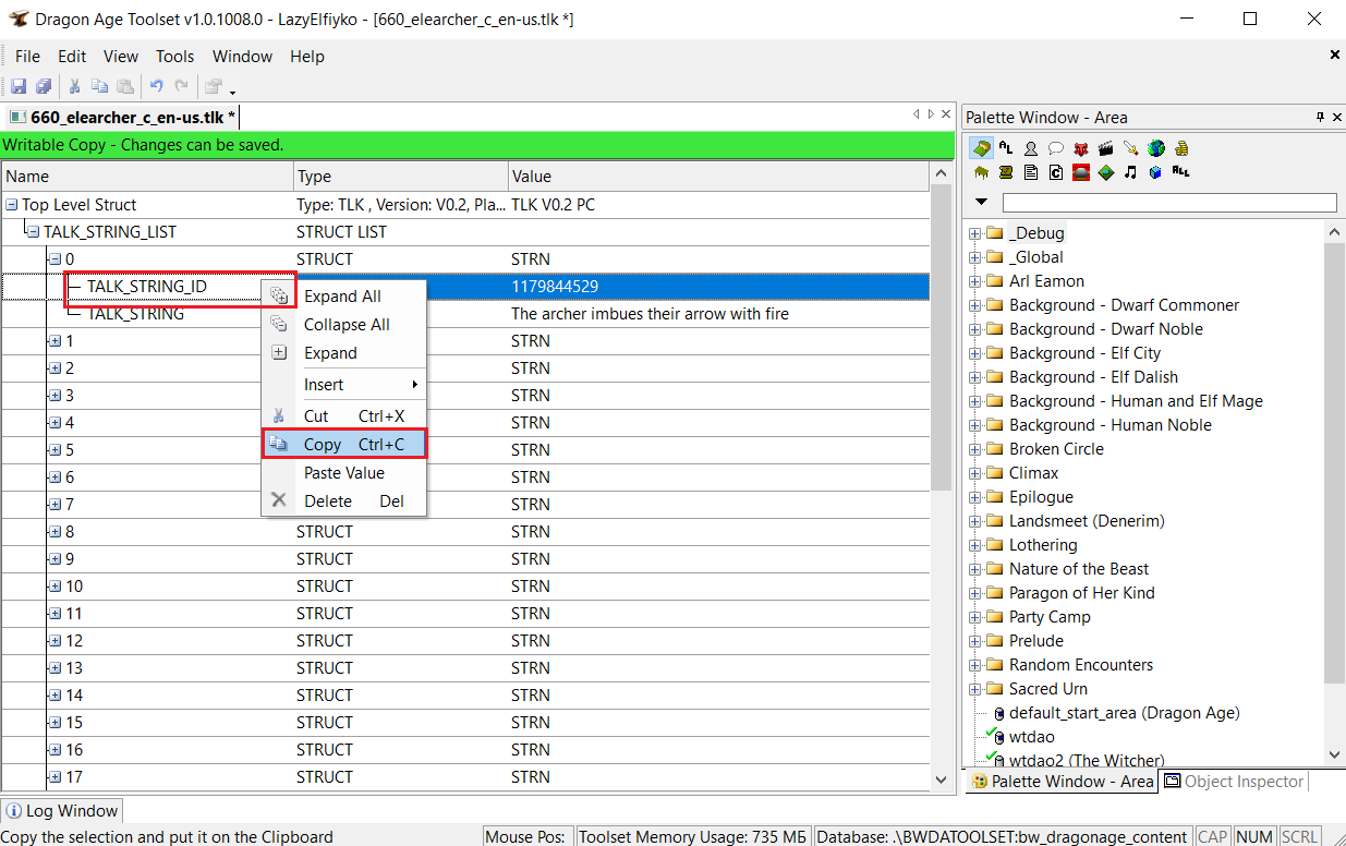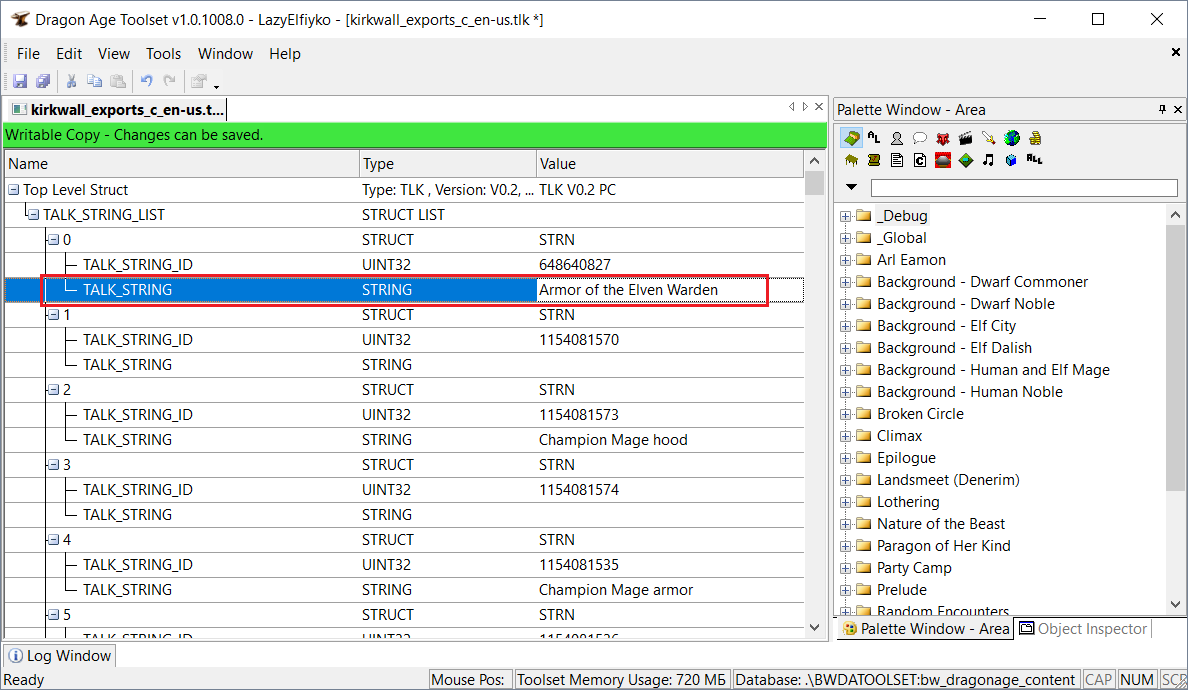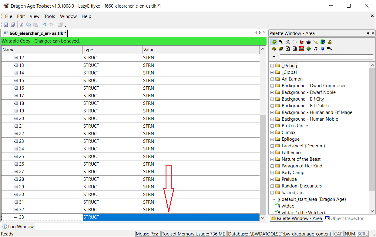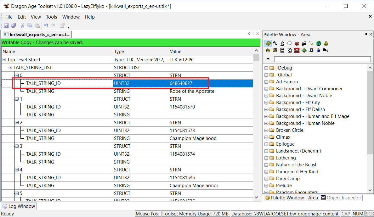 Структура tlk-файла довольна примитивна и больше всего напоминает древовидную таблицу. Чтобы было понятнее, я покажу вам структуру файла в Тулсете:
