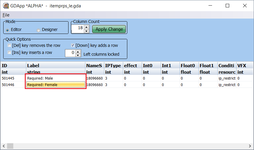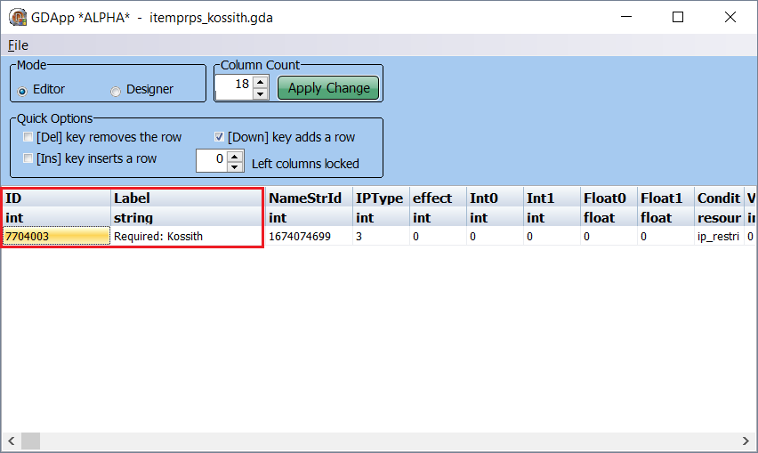 ID строк содержатся в первом столбце с одноимённым названием, а текст – в столбце Label. Перенос строк в файл *.tlk осуществляется по строй схеме: необходимо перенести ID и текст, НО! Текст в файле *.gda стирать нельзя, он должен остаться нетронутым.