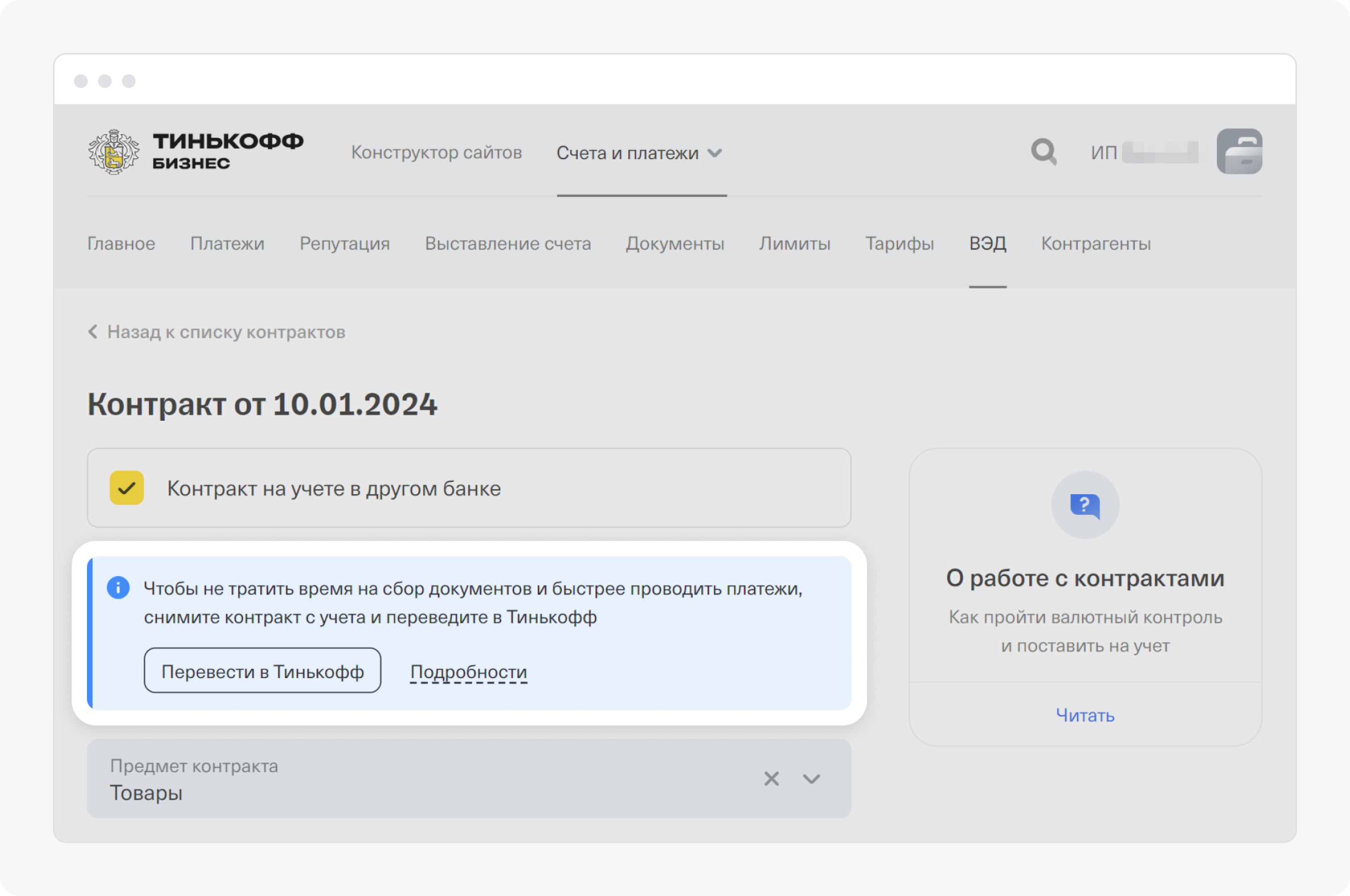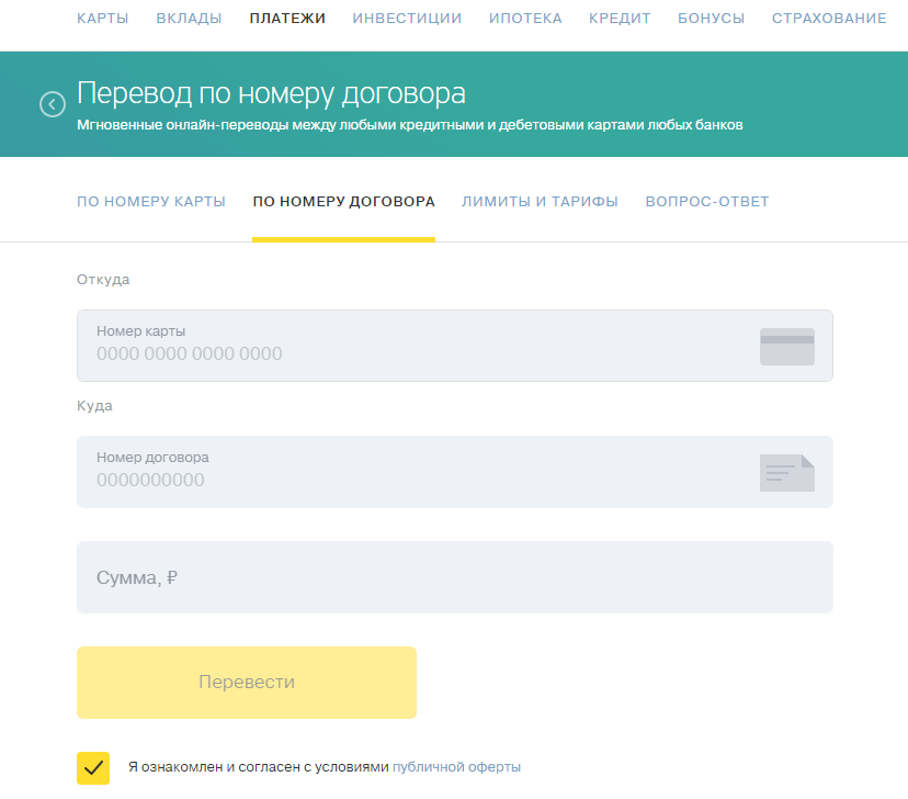 Перевод на договор тинькофф