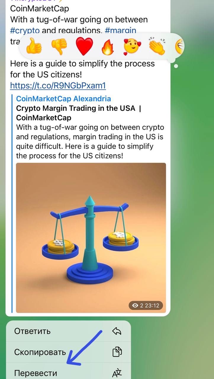 ✅ Чтобы перевести сообщение, нажмите на него (на iOS требуется зажать пальцем) и выбрать в появившемся меню пункт «Перевести».