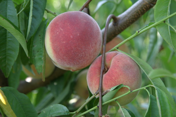 Perfekter Pfirsich über gebeugt