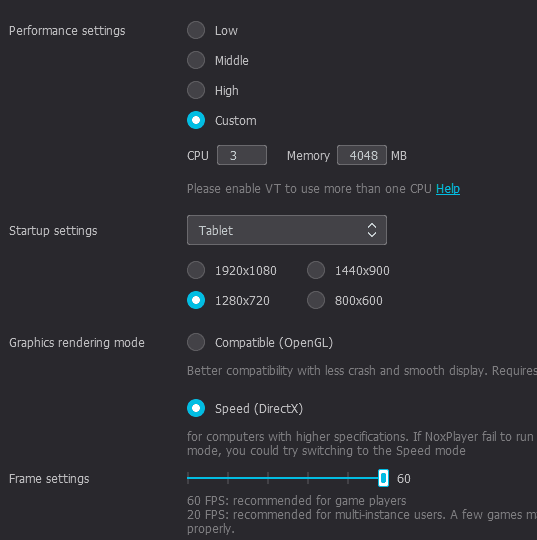 Performance preset