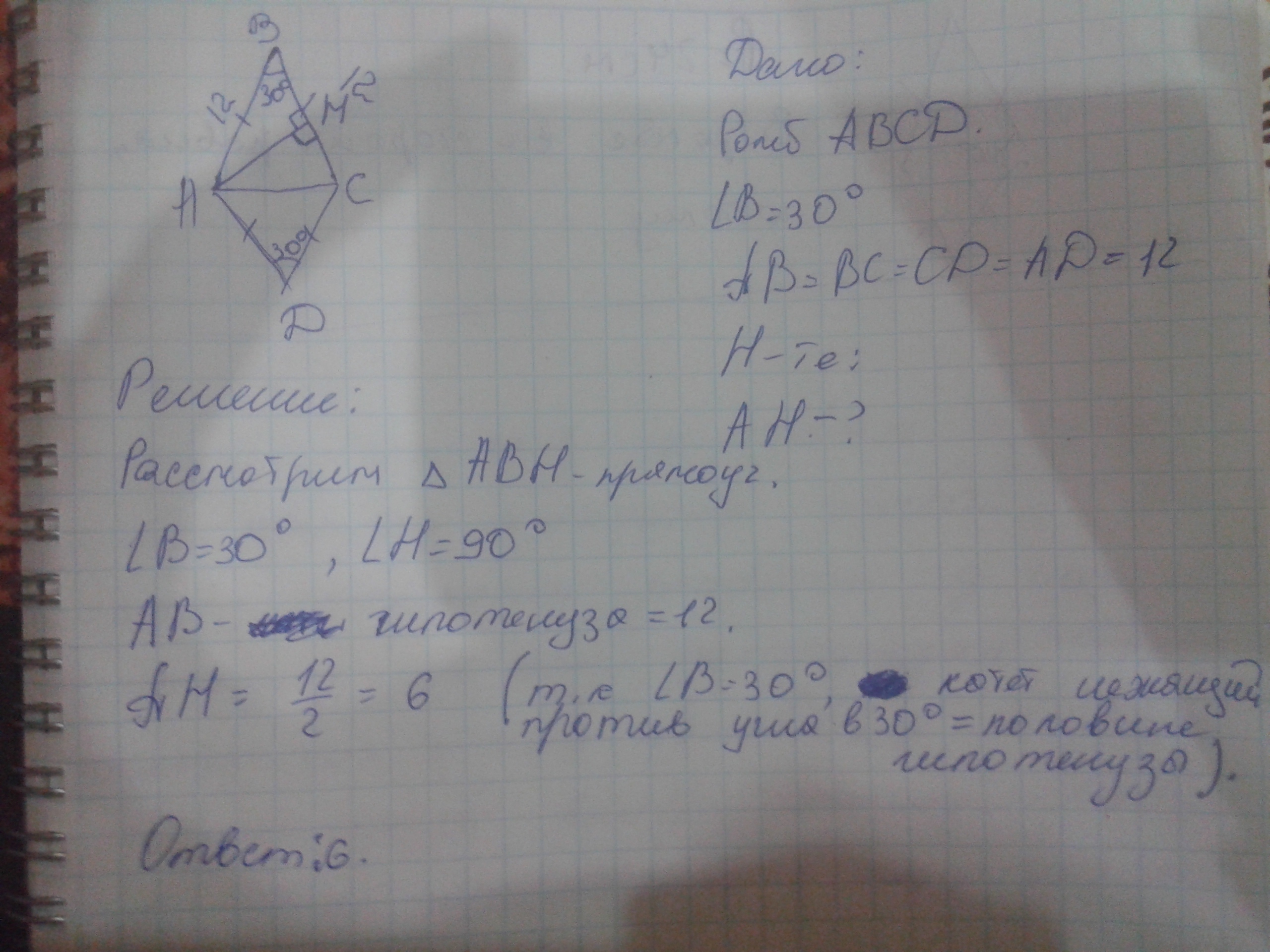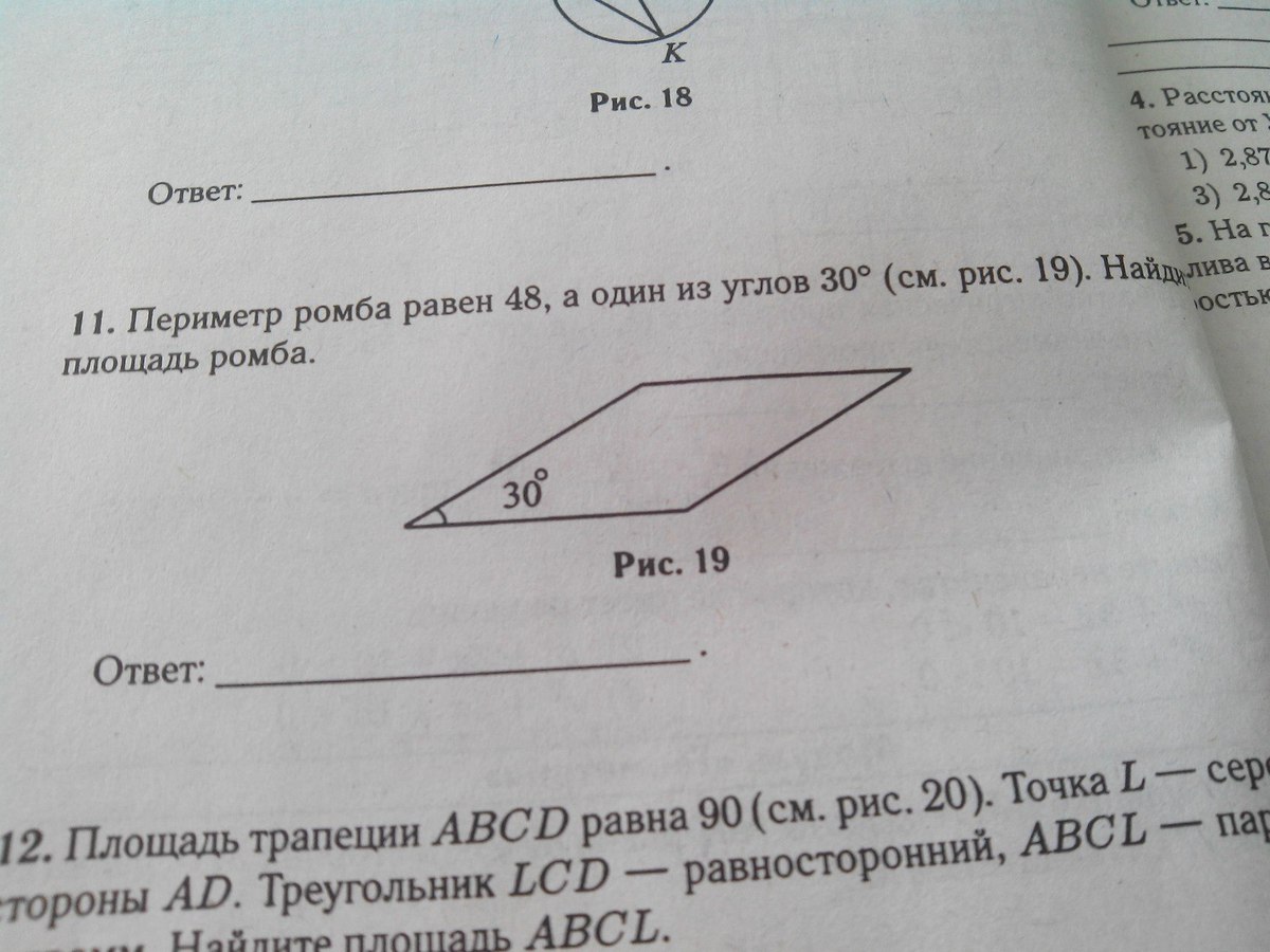 Периметр ромба 12 а угол 30 55 фото