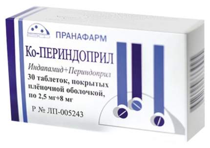 Ко-периндоприл, 2 .5 мг+8 мг, таблетки, покрытые пленочной оболочкой, 30 . . .