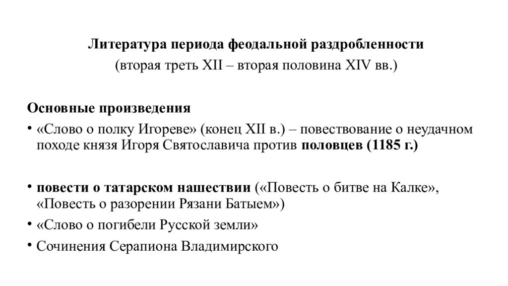Период древнерусской литературы ответ