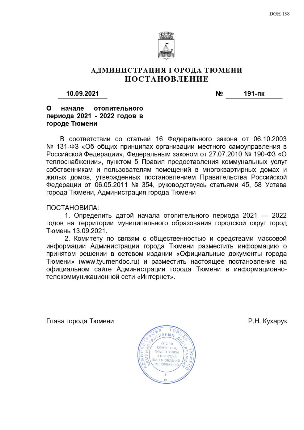 Период включения отопления