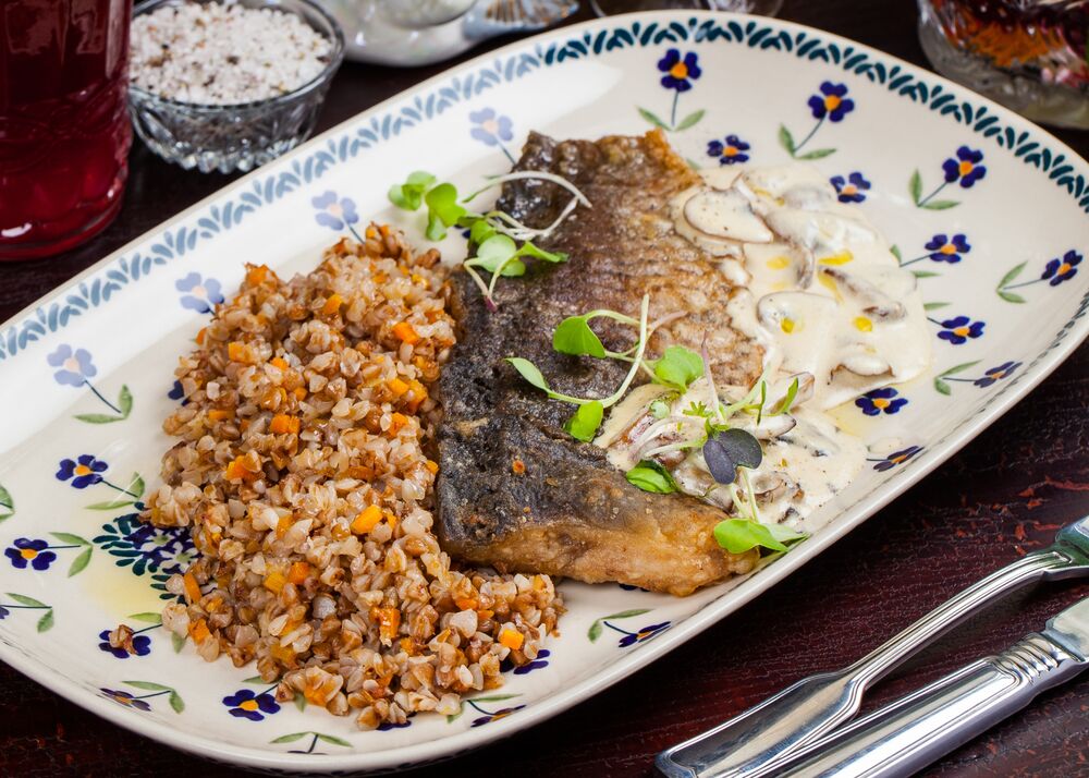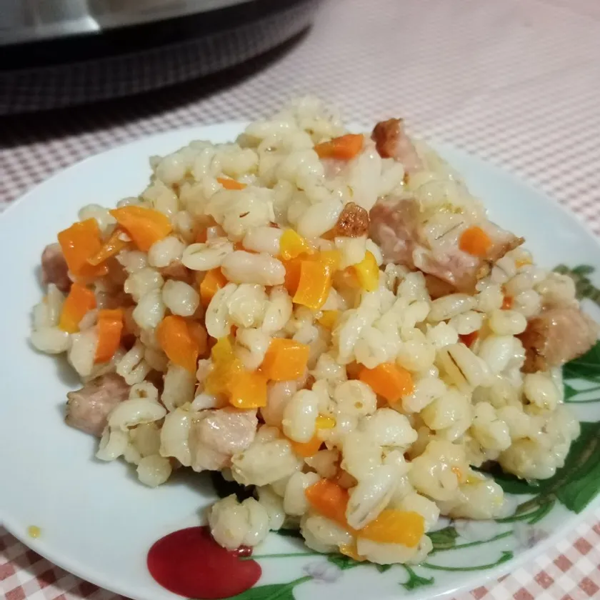 Перловка с красной рыбой