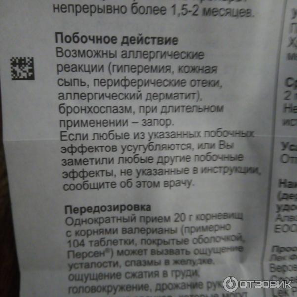 Побочные эффекты, противопоказания Персен легко переносится пациентами любого возраста . Только при наличии индивидуальной непереносимости составляющих компонентов возможно возникновение аллергии, невнимательности и вялости . При длительном лечении Персеном наблюдаются запоры, поэтому рекомендуется пересмотреть рацион .