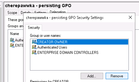Выполнив эти шаги, мы можем гарантировать, что даже с самым высоким уровнем привилегий администраторы безопасности не смогут удалить наш объект групповой политики, если они не будут имперсонифицировать учетную запись компьютера контроллера домена. Из-за этого объект очень сложно обнаружить, и даже если он будет обнаружен, его будет невероятно сложно удалить. Даже у нас больше нет необходимых разрешений для взаимодействия с нашей политикой.
